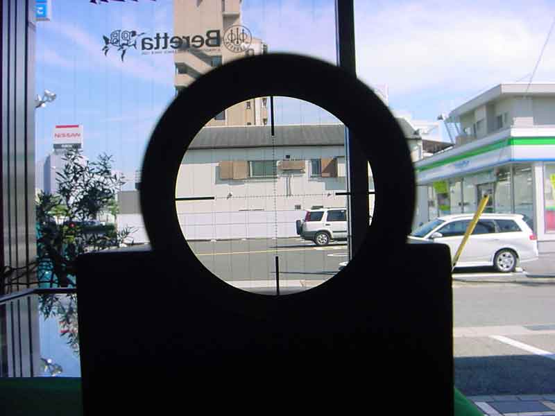 画像では見難いですが、いいスコープのレンズは裸眼で見るよりレンズを透して見るほうが明るいです。