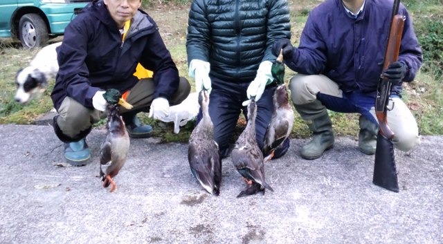 猟果は、マガモ2羽、カルガモ2羽、キンクロハジロ2羽でした。満足でしたが、キジの姿が見れなかったのが残念でした?!