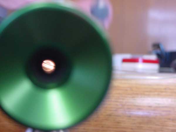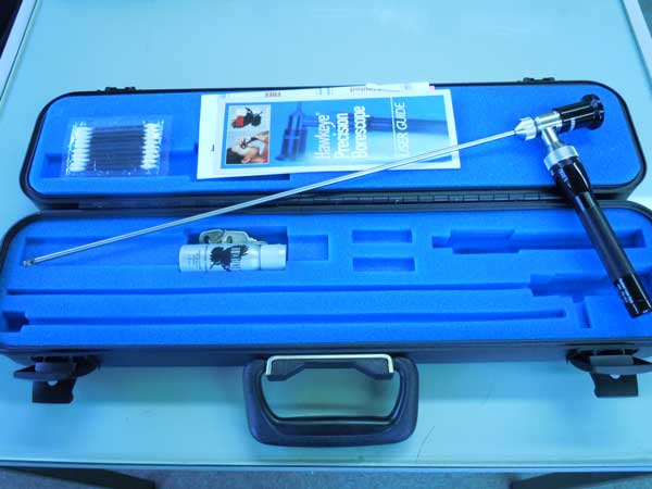 久しぶり出して来ました、「Hawkeeye」と言って銃身内部を覗く器具です。入口から42cmまでの90度横方向の全周が確認できます覗くとこのように ライフリングの状態がわかります(ピントがいまいちです) 左がサコーライフル75です。右が空気銃エアーワンのワルサー銃身です。さすがピッカピッカです!!
